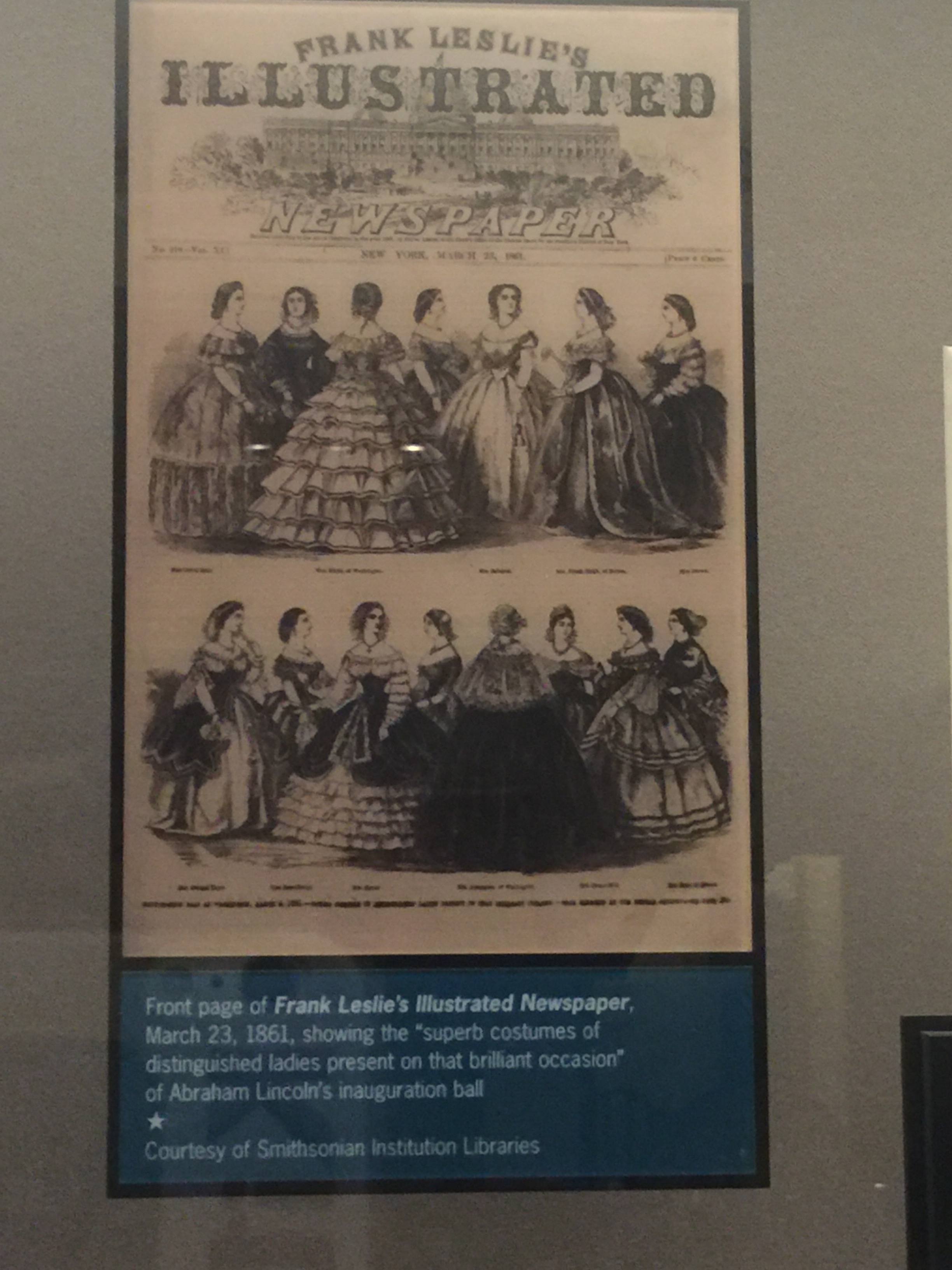 My favorite exhibit was the First lady’s gowns. My favorite gown is Mary Todd Lincolns! It is a purple velvet with white silk piping to accent it. It also has it original evening bodice with it still!