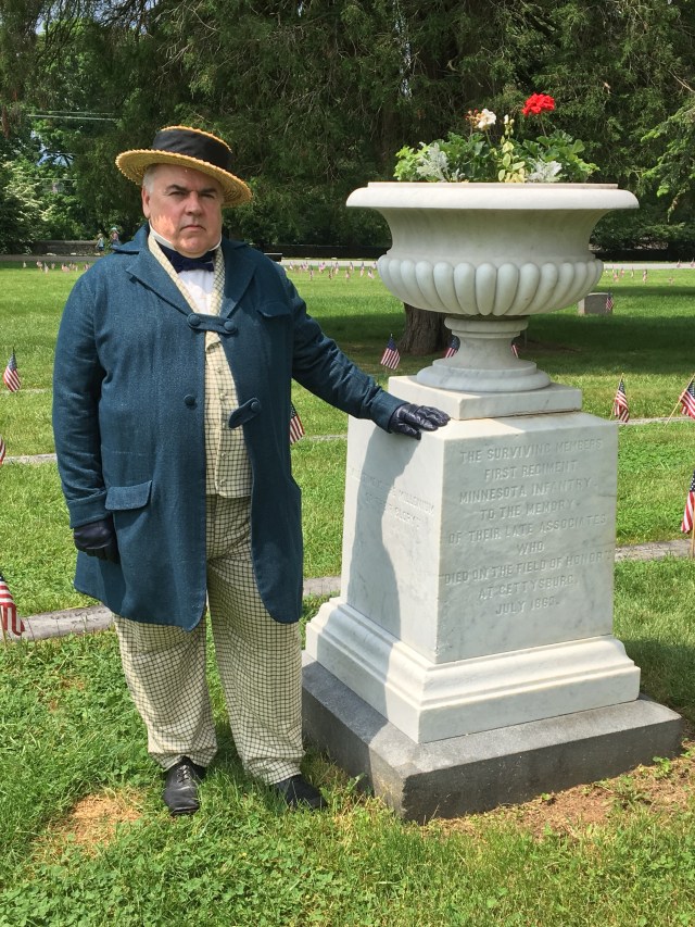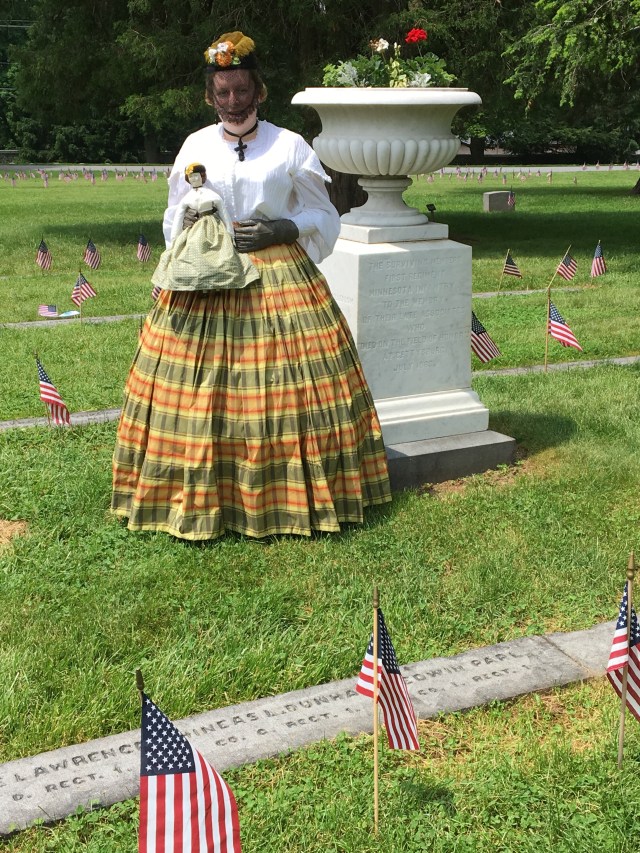 Our group The Civilians of Gettysburg, does an 1860’s Decoration Day ceremony in front of the soldier’s monument at the National Cemetery in Gettysburg, PA. We do poetry readings, talk about the origins of the holiday, and sing a few hymns. Sadly, I did not get any photos of the ceremony since we like to keep modern devices out of the public view for events. But we did get photos afterwards in the cemetery.