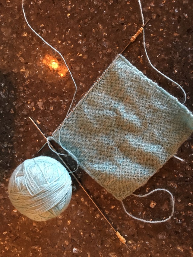 The current Nubia being knitted is in a beautiful shade of light sky blue and reminds me of a sky on a clear spring day. Sadly I don’t have any good photos of the color. It just wont photograph the same as I see it. But here is the current progress shot.