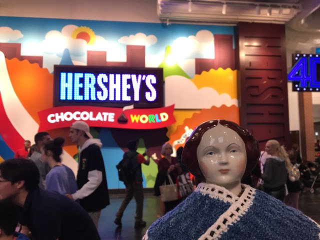 On Sunday 23rd Lydia Ann, her friend Mary Ella, Mary Ella’s mom and myself went to Hershey’s Chocolate world in Hershey, PA! If you haven’t been there yet, its like a taste of Hershey park but for free. It has a ride that simulates the making of chocolate (because you cant tour the Hershey factory anymore), a make your own chocolate bar tour, a huge gift shop full of the largest bags of chocolate the world ahs ever known and a food court.